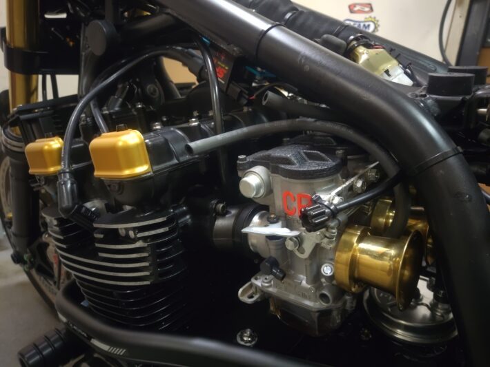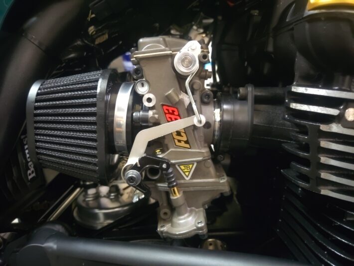 CRキャブレターからFCRキャブレターへ載せ替え作業です。